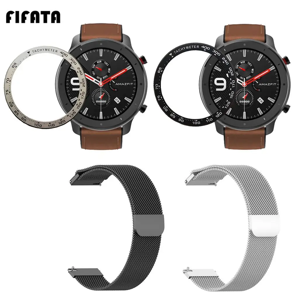 Металлический сменный ремешок FIFATA Milanese + защитный металлический ободок для часов для умных часов Huami Amazfit GTR 47 мм