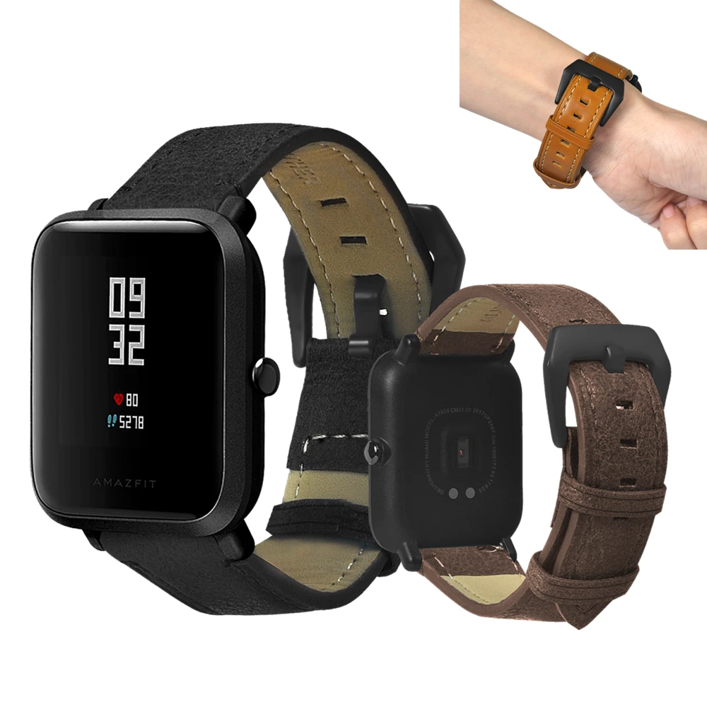 20 мм ремешок из натуральной кожи для Amazfit Bip Bit старинный браслет для Garmin Vivoactive3/Forerunner 245/245 M ретро браслет