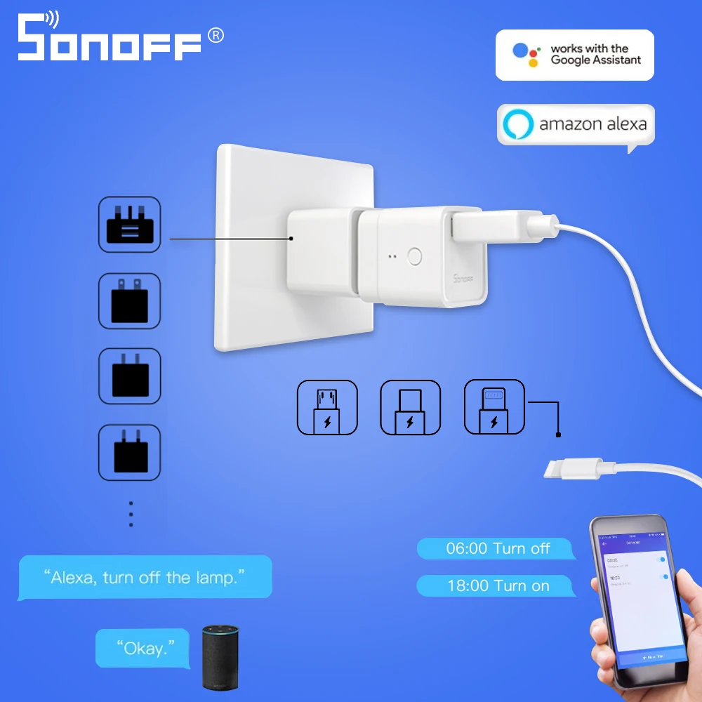 SONOFF Micro/Mini USB адаптер Wifi переключатель 5 в USB адаптер питания умный дом eWeLink Безликий голосовой пульт дистанционного управления Google Home Alexa