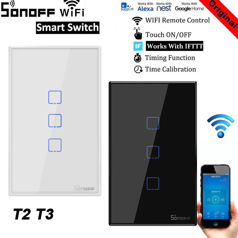 2019 Sonoff T1 настенный Wi-Fi адаптер Беспроводной дистанционного ламповое реле приложение Touch Управление Интеллектуальный переключатель Wi-Fi рабо...