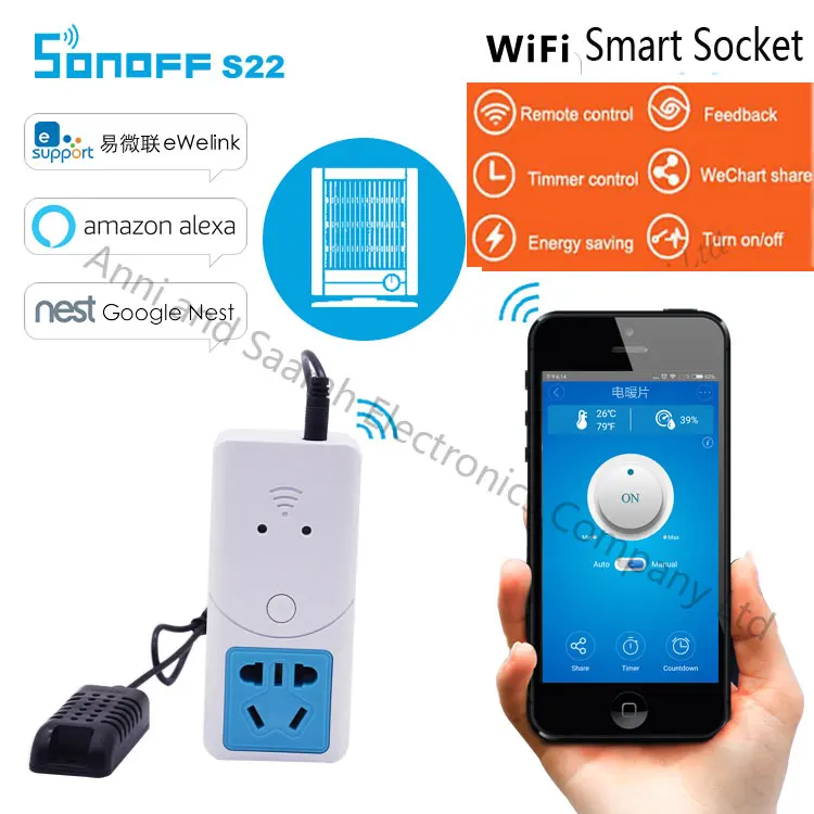 Itead sonoff WI-FI умная розетка с Температура и мониторинга влажности Сенсор US/UK/EU/AU S22 Подключите умный дом Автоматизация гнездо