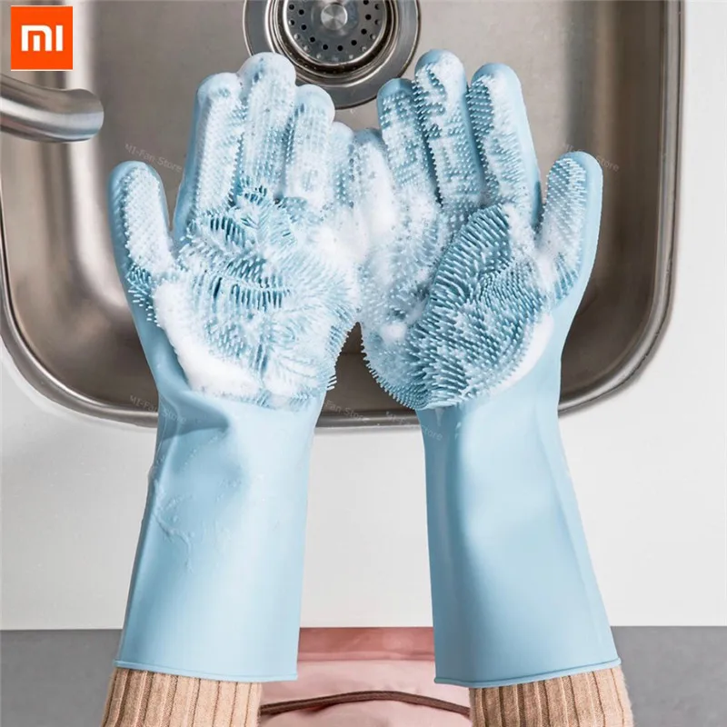 Xiaomi JJ Волшебные силиконовые чистящие перчатки изоляционные нескользящие перчатки для мытья посуды двухсторонние перчатки для домашней ку...