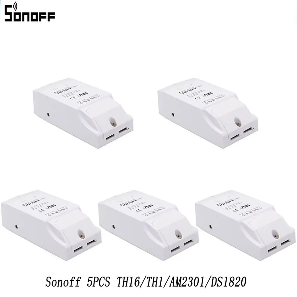 5 шт Sonoff TH16 TH10 Wi-Fi Smart Switch AM2301 Температура влажность Сенсор DS1820 Водонепроницаемый датчик температуры влажности