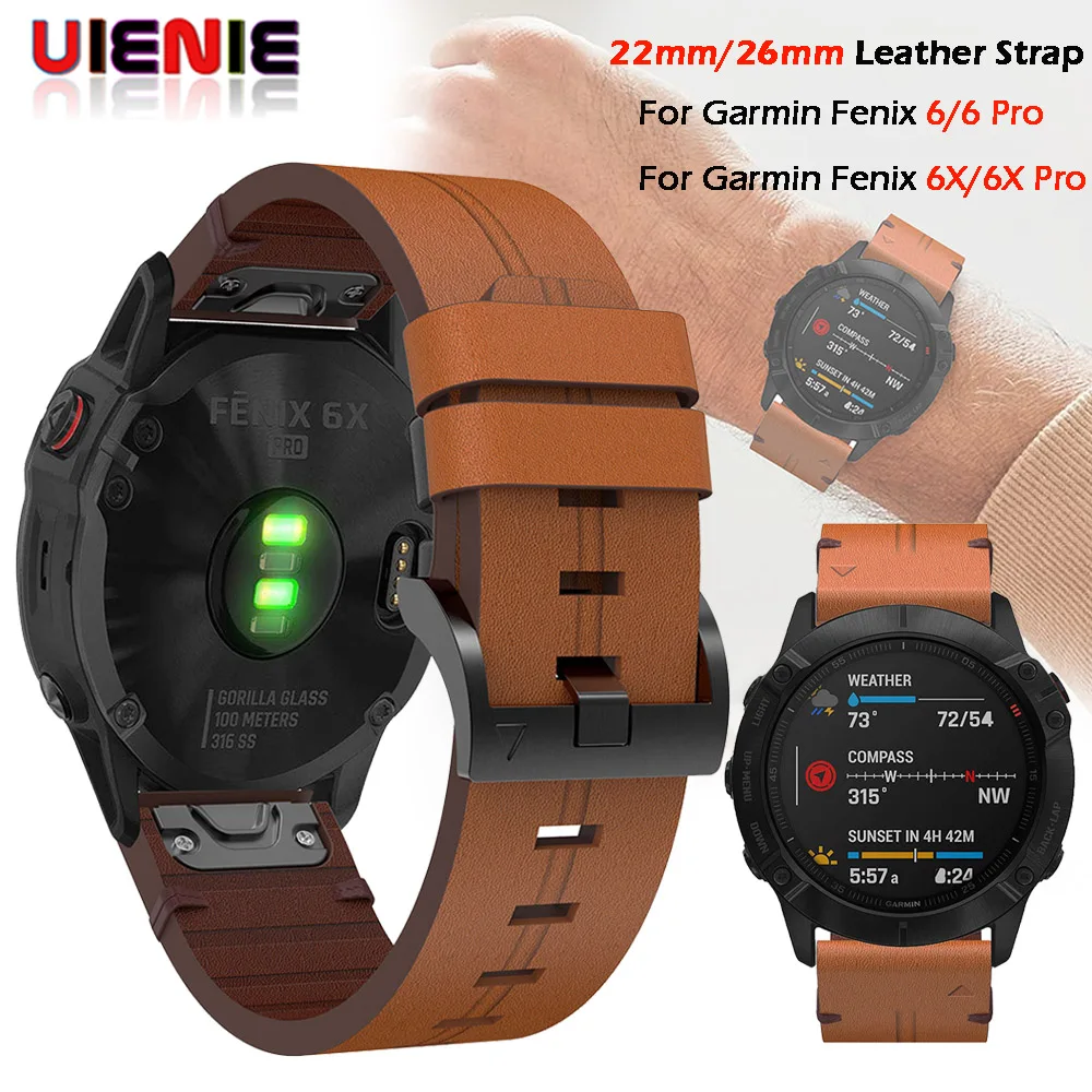 UIENIE Fenix 6 6X браслет 22 мм 26 мм Quick Fit из натуральной кожи ремешок для часов Garmin Fenix 5/5X/Forerunner 945/Instinct