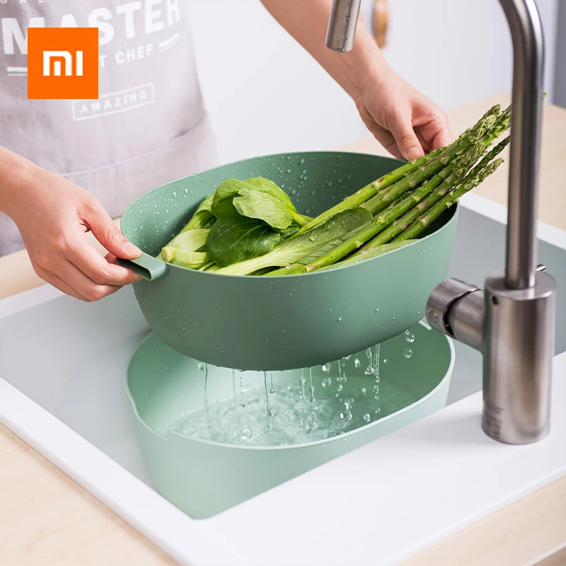 Xiaomi Youpin PP двойная дренажная корзина ситечко для кухонной раковины корзина для мытья фруктов и овощей кухонный гаджет дуршлаг контейнер
