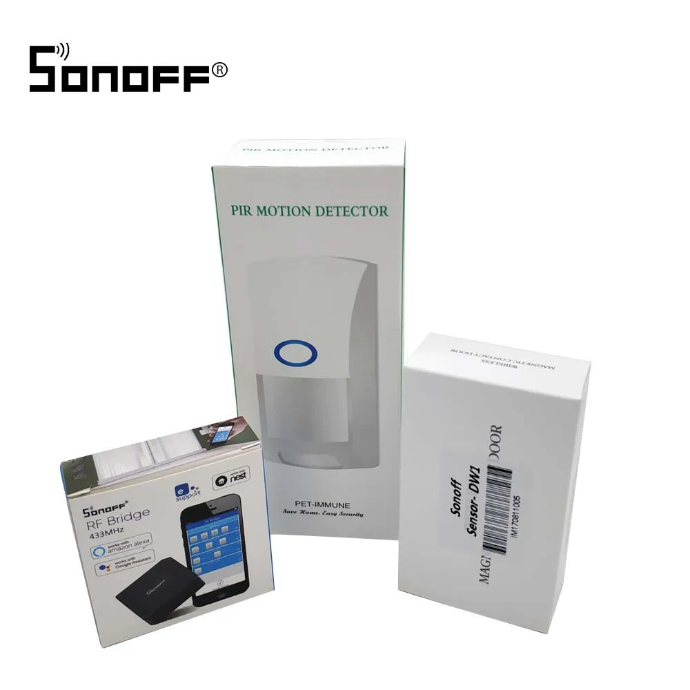 Sonoff РФ мост 433 МГц Wi-Fi Беспроводной преобразователь сигнала PIR2 PIR Сенсор + DW1 двери и окна сигнализации Сенсор умный дом автоматизация