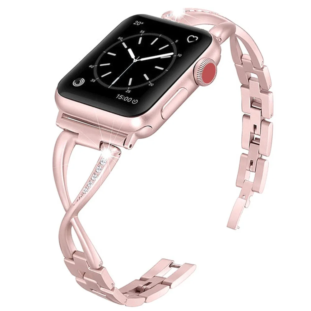 Женские часы ремешок для Apple Watch полосы 38 мм 42 мм 40 мм 44 мм Алмазный ремешок из нержавеющей стали для iWatch серии 4 3 2 1 браслет