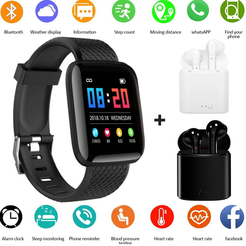 Детские Смарт-часы 116 plus, умные часы, трекер сердечного ритма, мужские спортивные Bluetooth наручные часы для IOS Android i7s, Bluetooth наушники