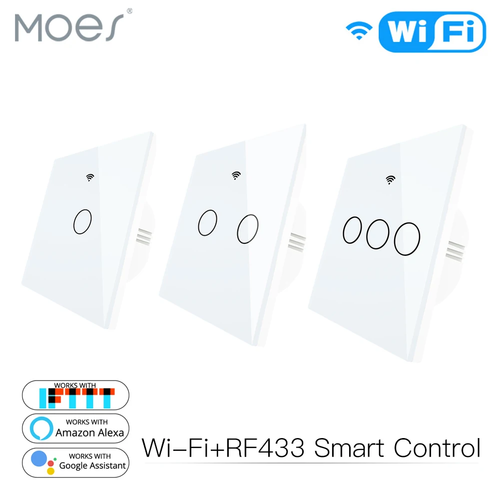 Wi-Fi, умное стекло Панель переключатель приложение Tuya дистанционного Управление работать с Alexa Echo Google Home RF433 ЕС Тип белый сенсорный экран 1/2/3