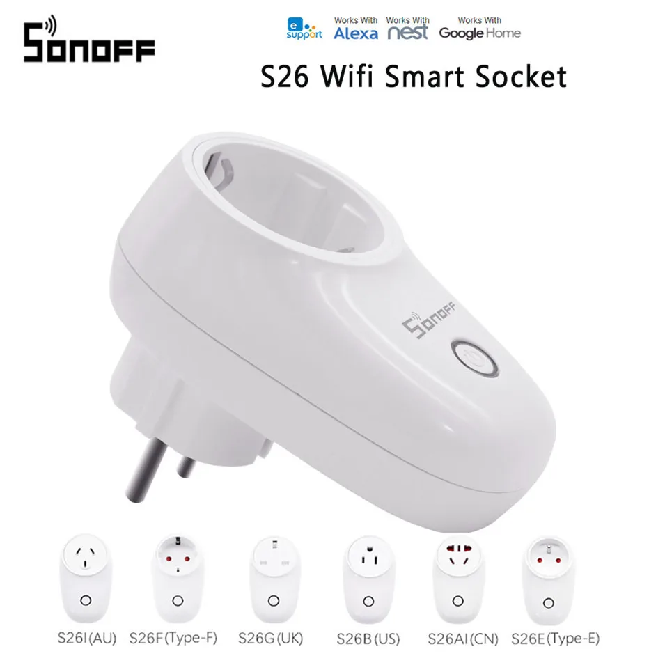 Sonoff S26 WiFi Smart розетка беспроводной штекер Мощность розетки US/UK/CN/EU умный дом переключатель работать с Alexa Google помощник
