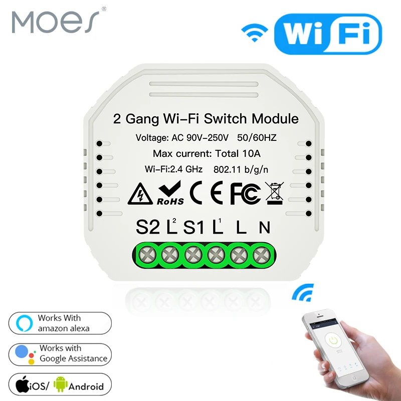 Wifi умный светильник Diy выключатель модуль Smart Life/Tuya приложение дистанционное управление, работает с Alexa Echo Google Home 2 Gang 2 Way.
