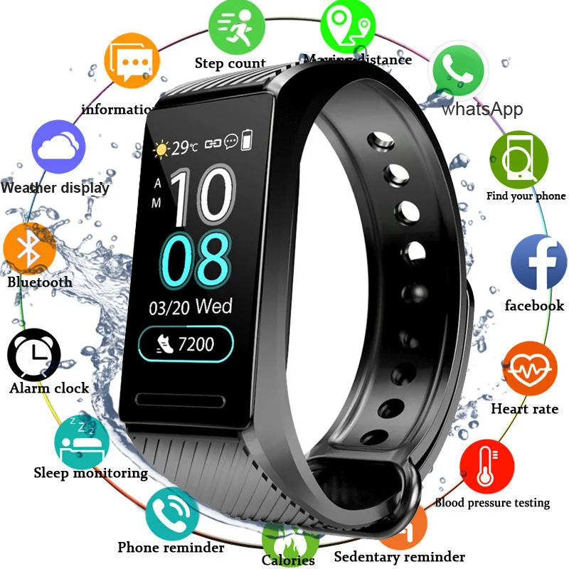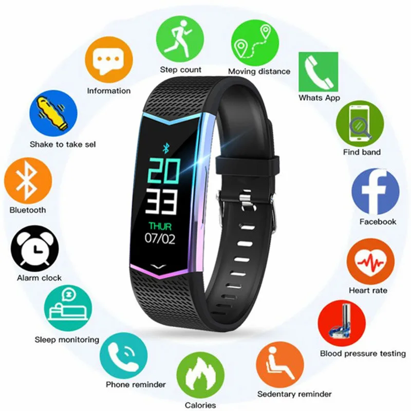 C8 1,08 ''ips цветной экран IP67 водонепроницаемые Смарт часы кровяное давление сна O2 монитор вызова вибрации Спорт Фитнес браслет