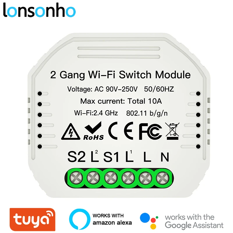 Lonsonho умный Wifi переключатель реле 2 банды 220 В туя Модуль Автоматизации умного дома пульт дистанционного управления совместимый с Alexa Google Home ...