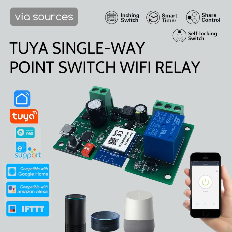 Однополосный контроллер реле точки Tuya умный Wifi переключатель беспроводной самоблокирующийся таймер Google Home Alexa совместимый