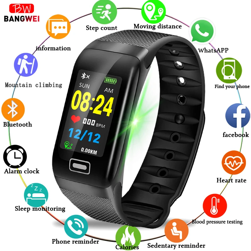 LONGET умный браслет с пульсометром, фитнес-часы цветной экран фитнес-трекер с монитором сна для мужчин женщин дети