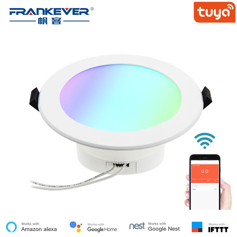 FRANKEVER 4 дюйма многоцветный полный Функция светодиодный Интеллектуальный светильник круглый потолочное утопленное пятно света 10 W Wi-Fi Управл...