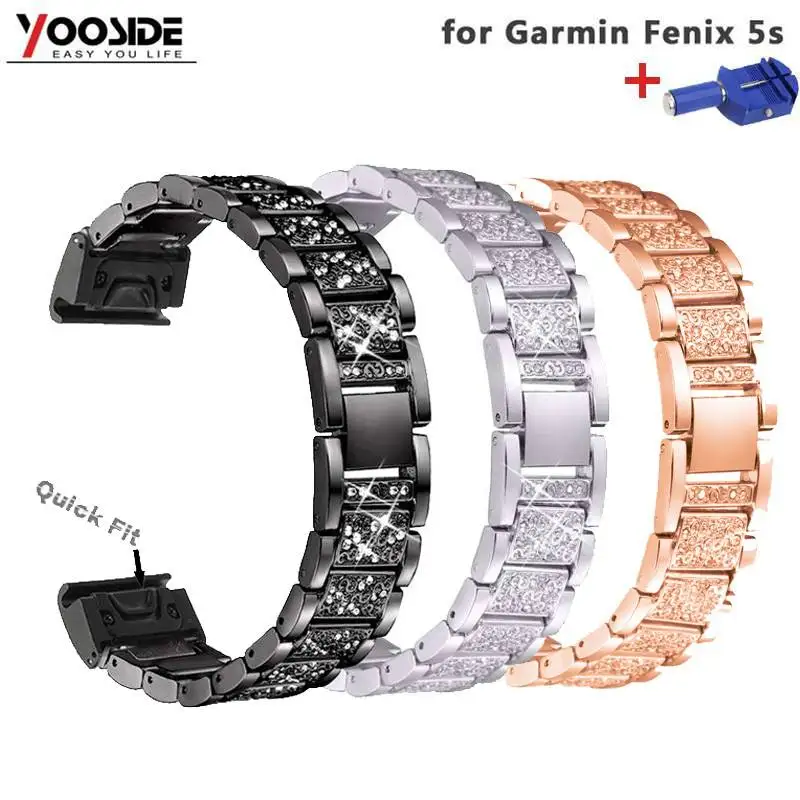 Yooside Quick Fit 20 мм и украшением в виде кристалла Нержавеющая сталь металлический ремешок для часов, ремешок для наручных часов Garmin Fenix 5S/5S больш...