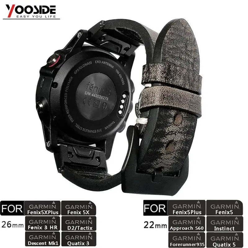 YOOSIDE 26 мм 22 мм Quick Fit винтажные часы из натуральной кожи ремешок для Garmin Fenix 5X/5X Plus/Fenix 3/Forerunner 935/Fenix 5