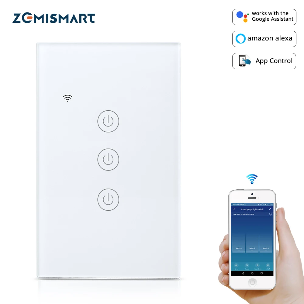Zemismart US Tuya WiFi выключатель света без нейтрального провода требуется один два три банды Alexa Google домашний помощник умный контроль жизни