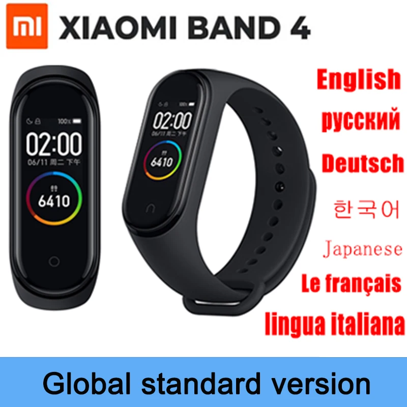 Xiao mi Band 4 умный Браслет 0,96 ''AMOLED цветной сенсорный экран пульсометр фитнес 5ATM водонепроницаемый браслет mi band 4 Global