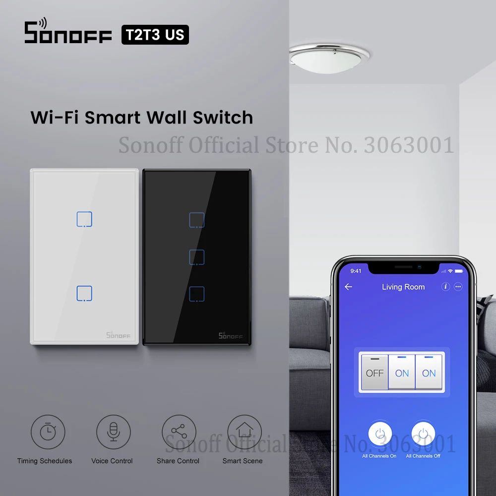 Интеллектуальный выключатель света SONOFF T2/T3 Wi-Fi настенный выключатель нам/1/2/3 RF433MHZ пульт дистанционного управления умный светильник выключа...