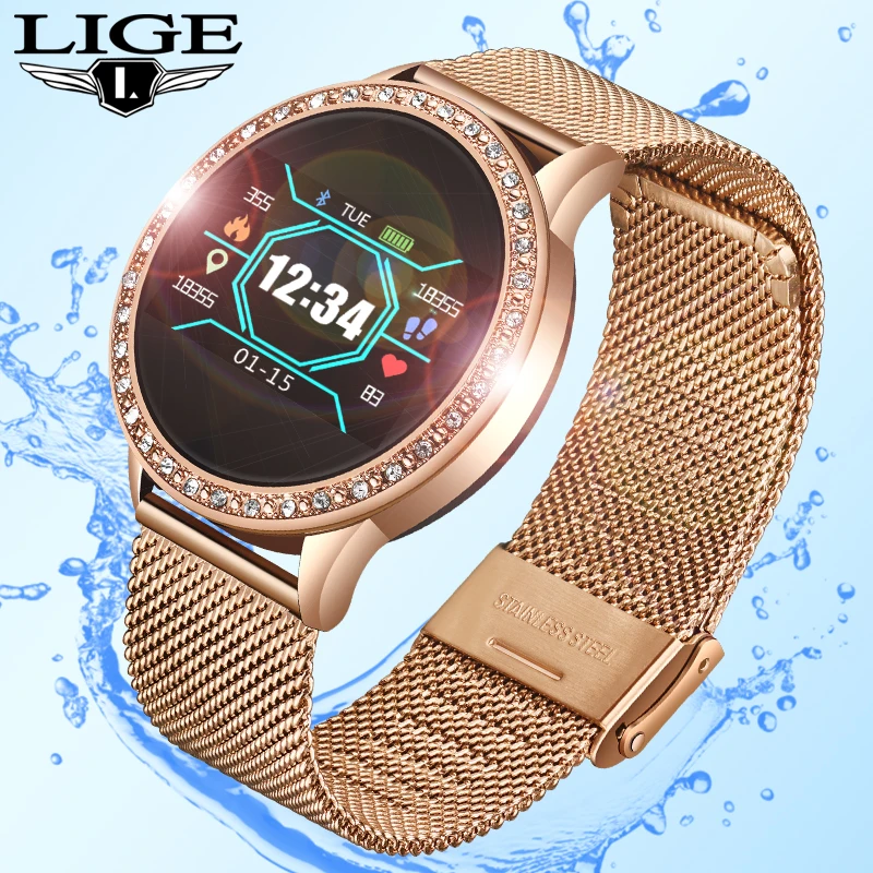 LIGE, умные часы для женщин, кровяное давление, пульсометр, фитнес-трекер, спортивный смарт-браслет, будильник, напоминание, умный Браслет