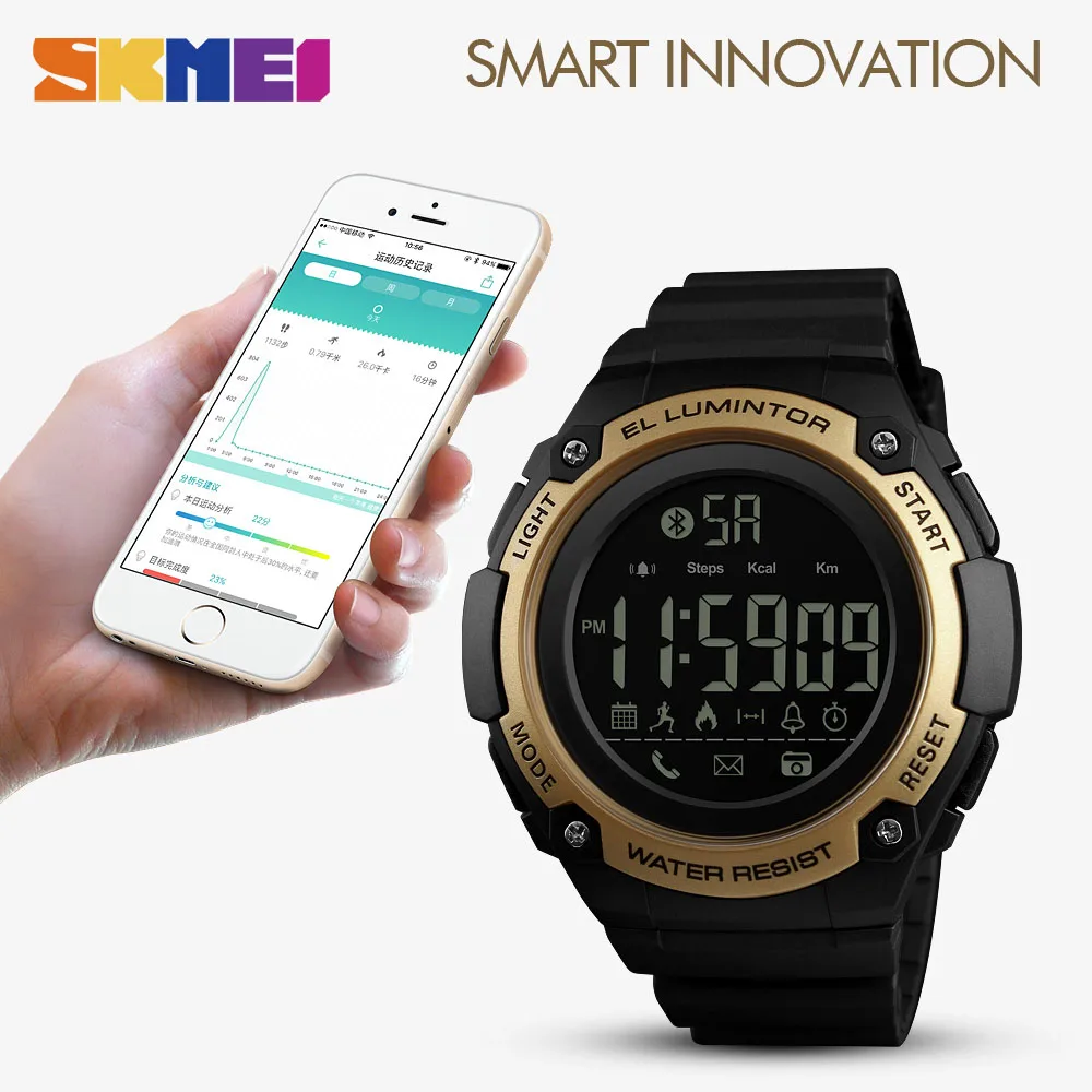 SKMEI Для мужчин Смарт Спорт калорий, шагомер смотреть напоминание часы расстояние обратного отсчета 50 м Водонепроницаемый часы Relogio Masculino