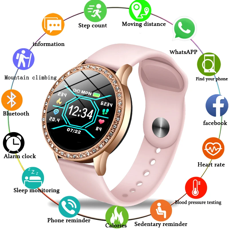 Смарт-часы женские благородные бриллиантовые часы водонепроницаемые спортивные фитнес-трекер пульсометр Монитор артериального давления Шагомер Умные часы