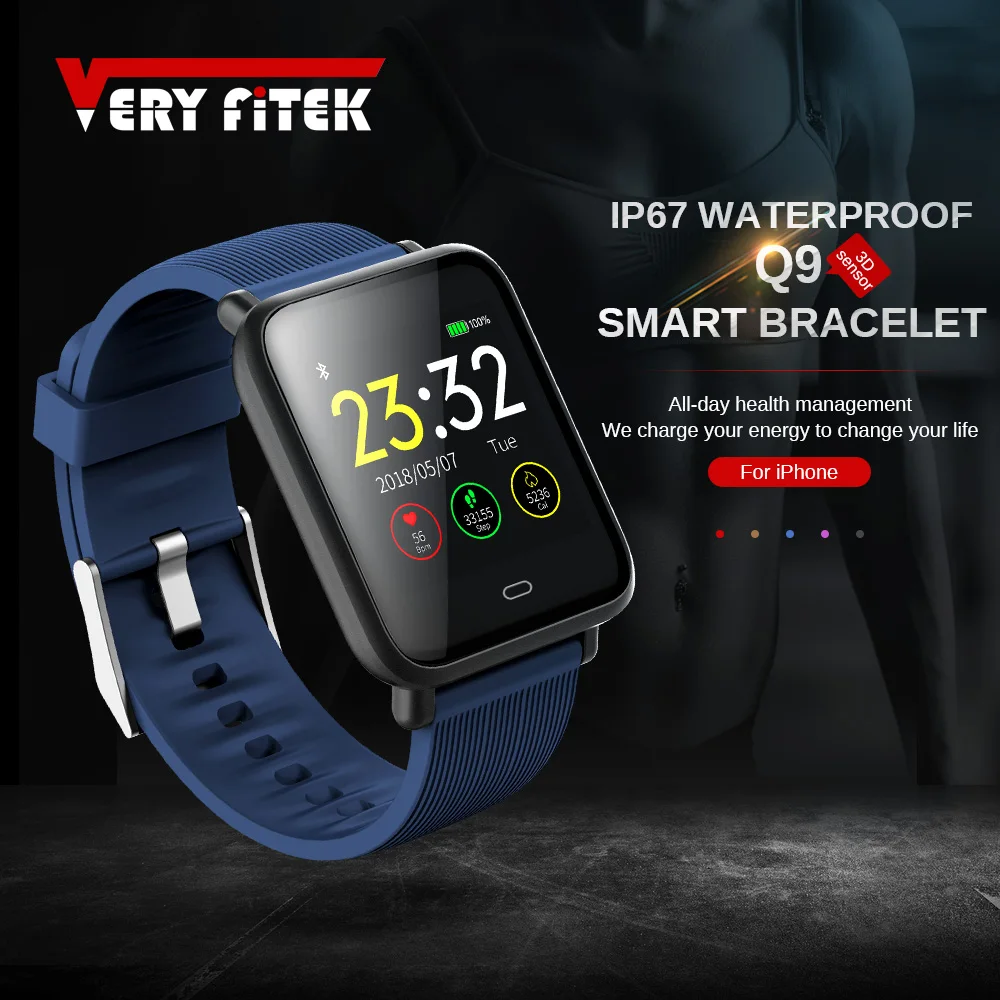 VERYFiTEK Q9 крови Давление монитор сердечного ритма Смарт часы IP67 Водонепроницаемый Спорт Фитнес Trakcer часы Для мужчин женские умные часы