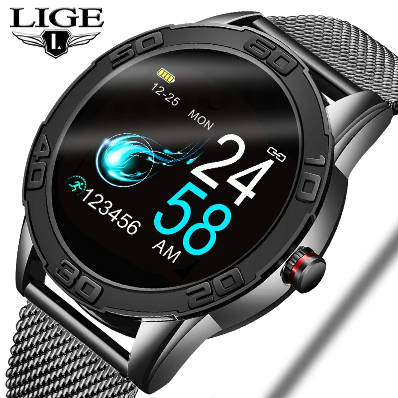 LIGE 2020 новые спортивные Смарт-часы со стальным ремешком, мужские многофункциональные часы с функцией измерения артериального давления, шагомером, водонепроницаемые Смарт-часы + коробка
