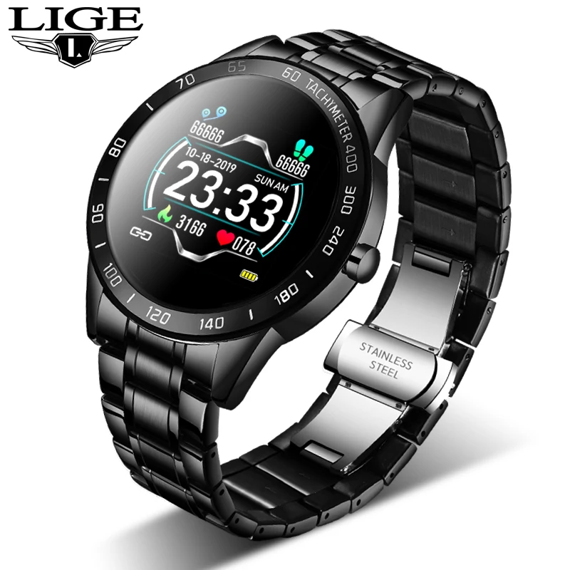 Мужские Смарт-часы LIGE со стальным ремешком, пульсометр, монитор артериального давления, спортивный многофункциональный режим, фитнес-трекер, водонепроницаемые умные часы