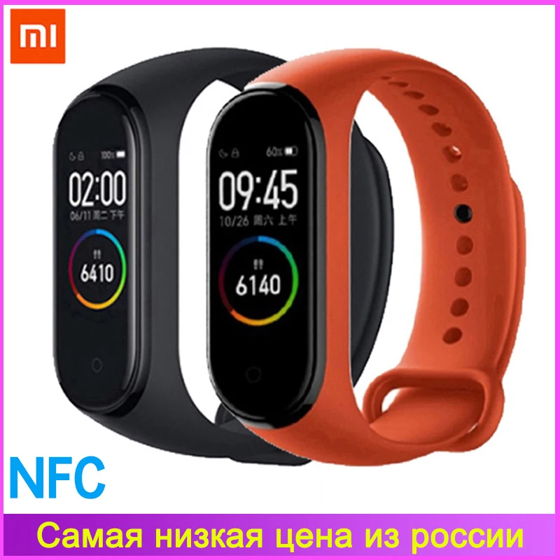 Оригинальный Xiaomi mi-браслет 4 сердечного ритма фитнес цветной сенсорный экран mi Band 4 умный Браслет 135 мАч Bluetooth 5,0 музыкальный браслет