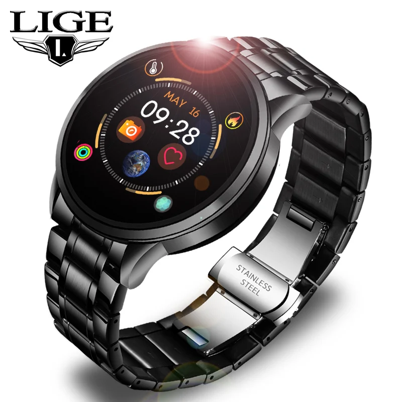 Смарт-часы LIGE со стальным ремешком для мужчин, фитнес-трекер, пульсометр, измеритель артериального давления, спортивные водонепроницаемые Смарт-часы для Android IOS
