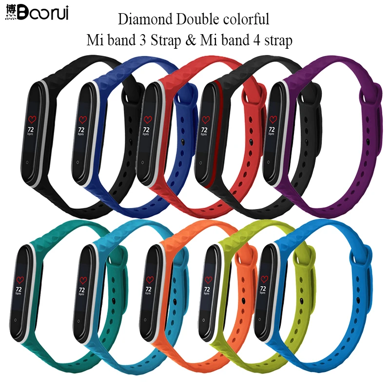 BOORUI Diamond mi band 4 ремешок двойной цветной pulsera mi band 4 Аксессуары Силиконовый mi band 3 ремешок для xiaomi mi band 3 4 ремешок