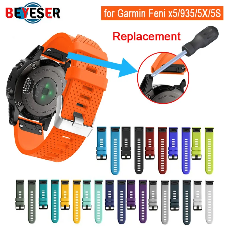 26 22 20 мм ремешок для Garmin Fenix 5X5 5S Plus 3 3 HR Forerunner 935 часы Quick Release силиконовые легко подходят ремешок на запястье