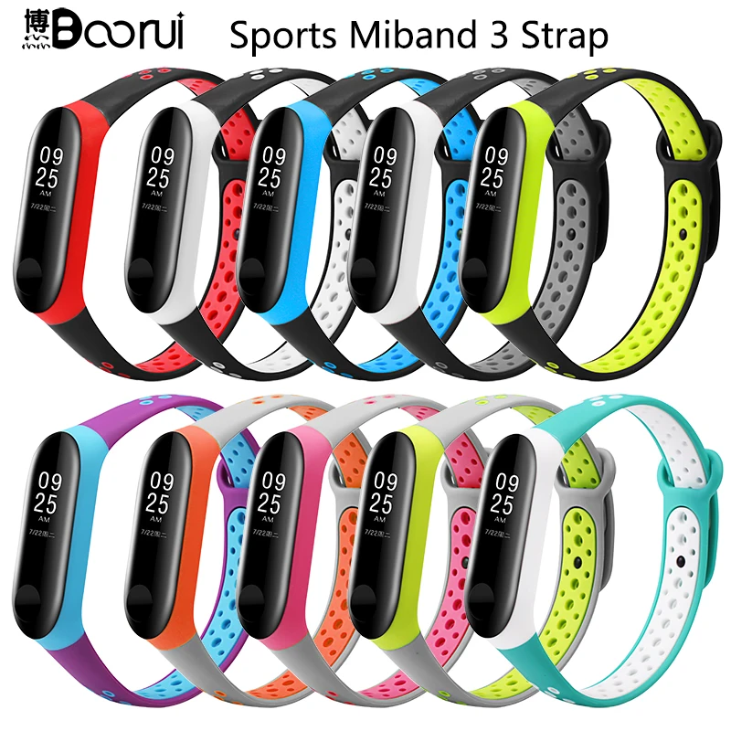 BOORUI mi band 3 ремешок двойной цвет дышащий силикон mi band 3 ремешок спортивный pulsera Замена для xiaomi mi band 3 ремешок