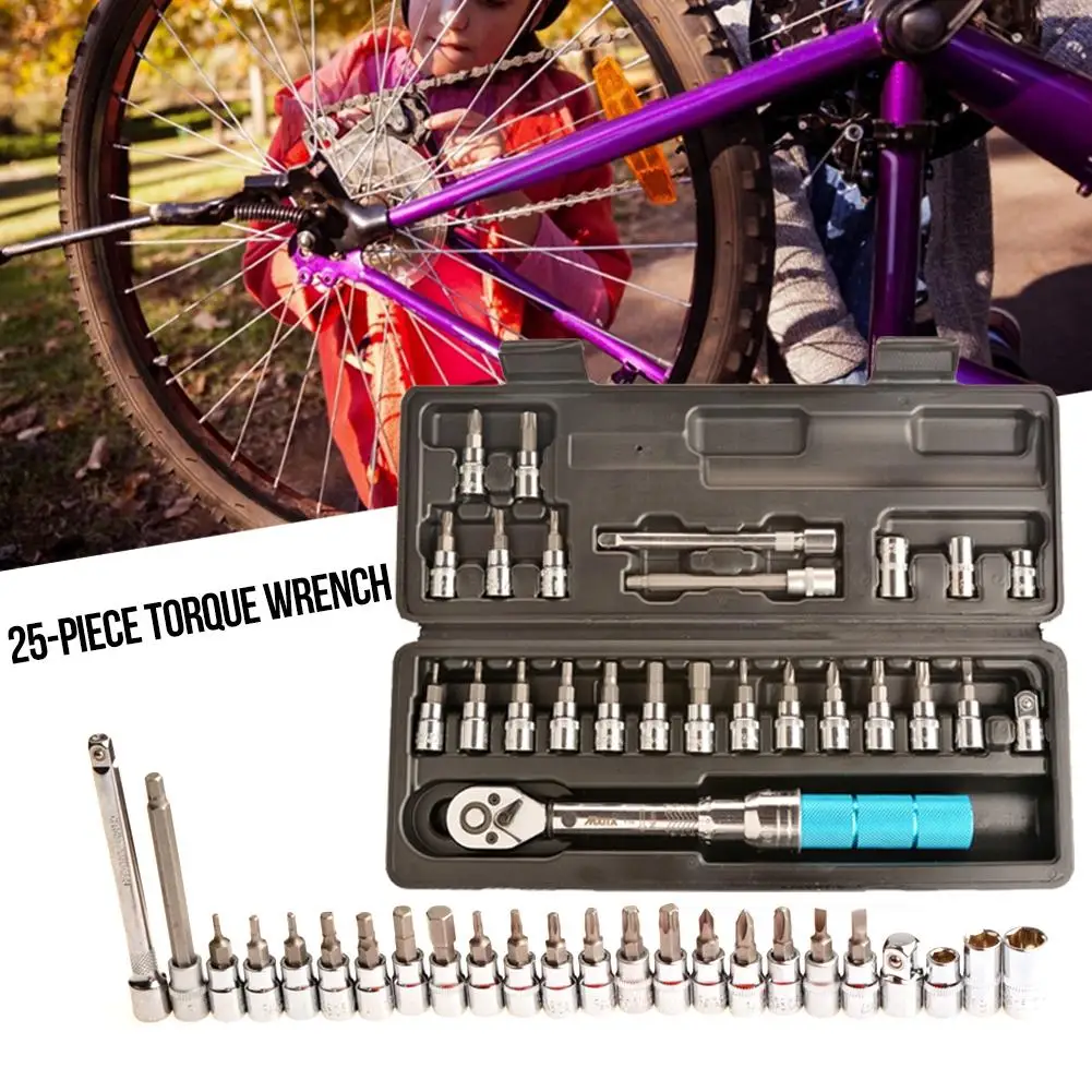 Инструмент для ремонта автомобиля, 25 шт., Ремонтный инструмент, предустановленный динамометрический ключ для ремонта велосипеда, Регулируемый динамометрический ключ
