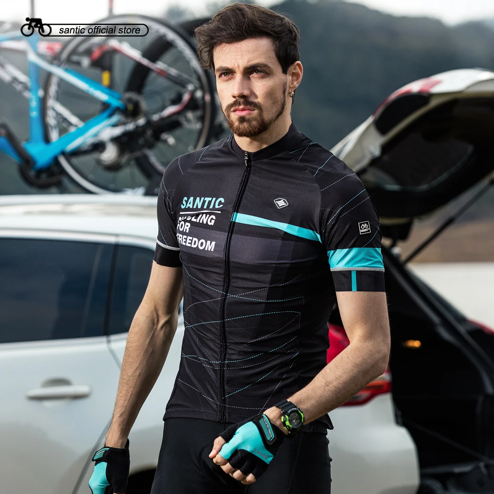 Santic Для Мужчин велосипедные шорты Джерси Pro Fit две Цвета Antislip рукав манжеты шоссейные велосипеды MTB с коротким рукавом дышащая трикотажная о...