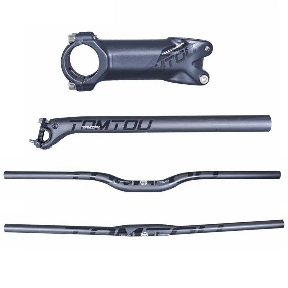 TOMTOU черный матовый из углеродного волокна Велоспорт горный велосипед руль набор рулей + подседельный штырь + стебель MTB велосипедные запчас...