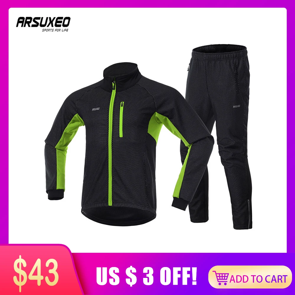 ARSUXEO Мужская зимняя теплая термальная велосипедная куртка для езды на велосипеде брюки Униформа ветрозащитная Водонепроницаемая 14A