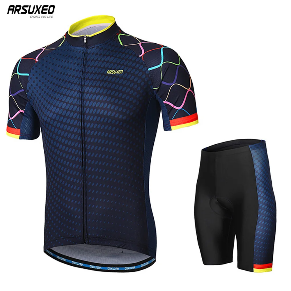 ARSUXEO мужские велосипедные комплекты велосипед Джерси с коротким рукавом горный велосипед MTB комплекты с рубашкой Мягкие Шорты Maillot Ropa Ciclismo ...