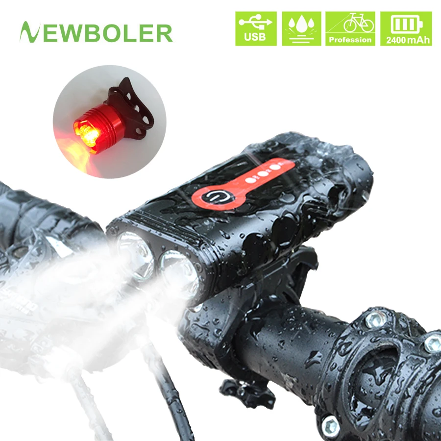 NEWBOLER 2400 люмен комплект велосипедных фар L2 велосипедный фонарь usb-платно Водонепроницаемый Велоспорт лампы MTB фара светодиодный сзади перед...