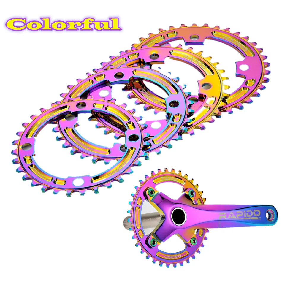 Красочные круглые Узкие Широкие цепи Корона MTB горный велосипед 104BCD 32T 34T 36T 38T шатуны зубные пластины запчасти ALU 7075