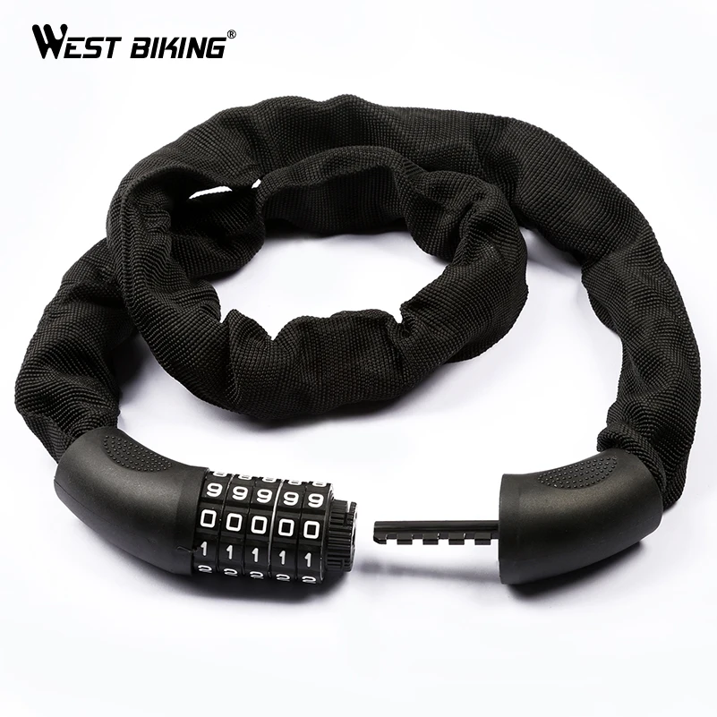 WEST BIKING велосипед замок 5 пароль Сталь ткань 94 см Цифровой цепи блокировки противоугонной безопасности Открытый Candado Bicicleta велосипедов замок