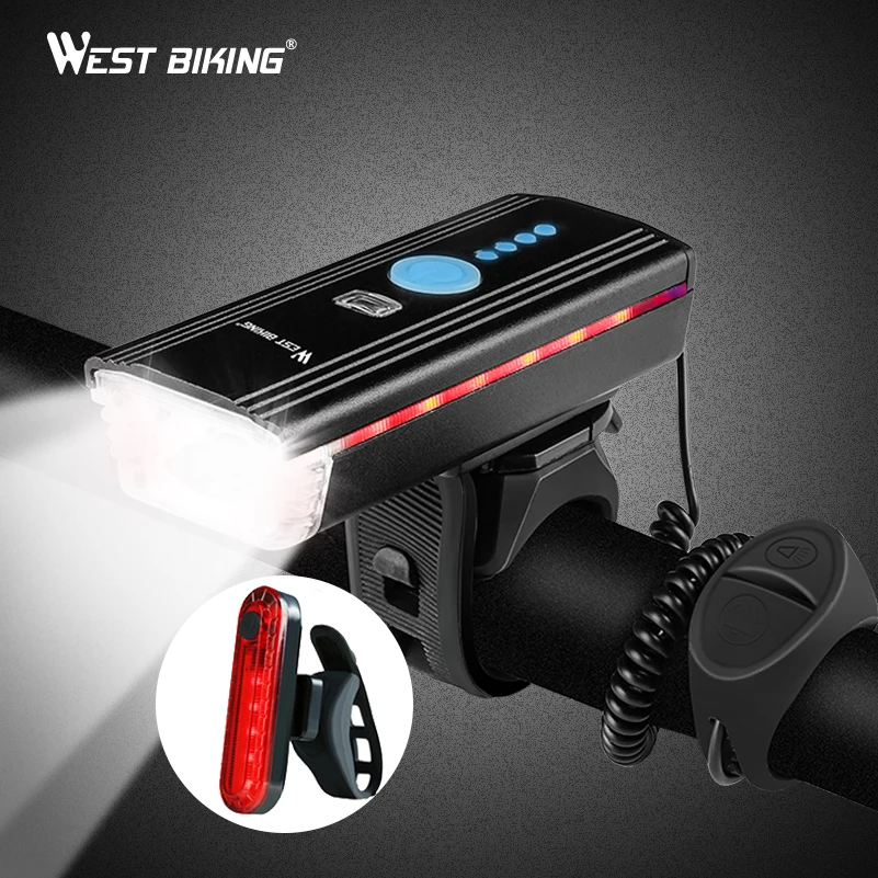 West biking велосипед свет индукции передний свет Велоспорт велосипед зарядка Предупреждение фонарик Фонарь на руль с головкой колокольчика ла...