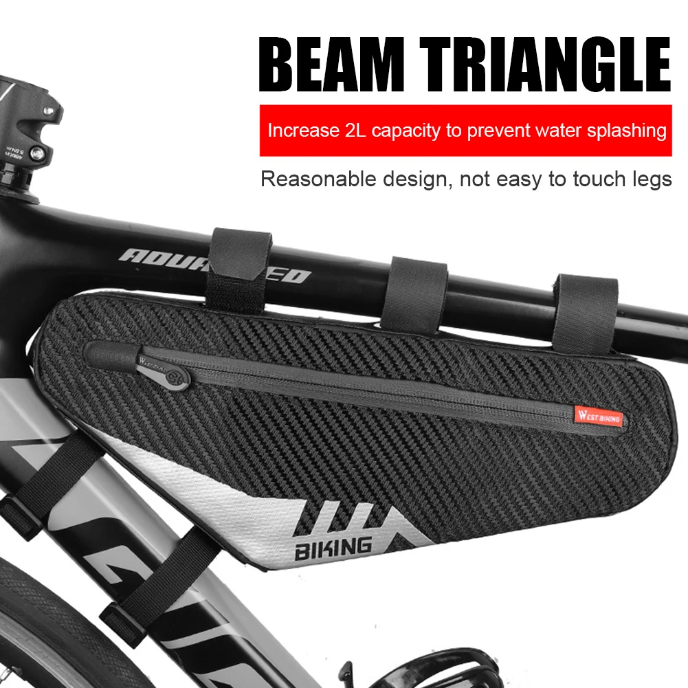 Водонепроницаемая сумка для велосипеда WEST BIKING 2L вместительная сумка для велосипеда MTB Передняя Труба треугольная сумка большая емкость Инструменты Аксессуары для велосипеда