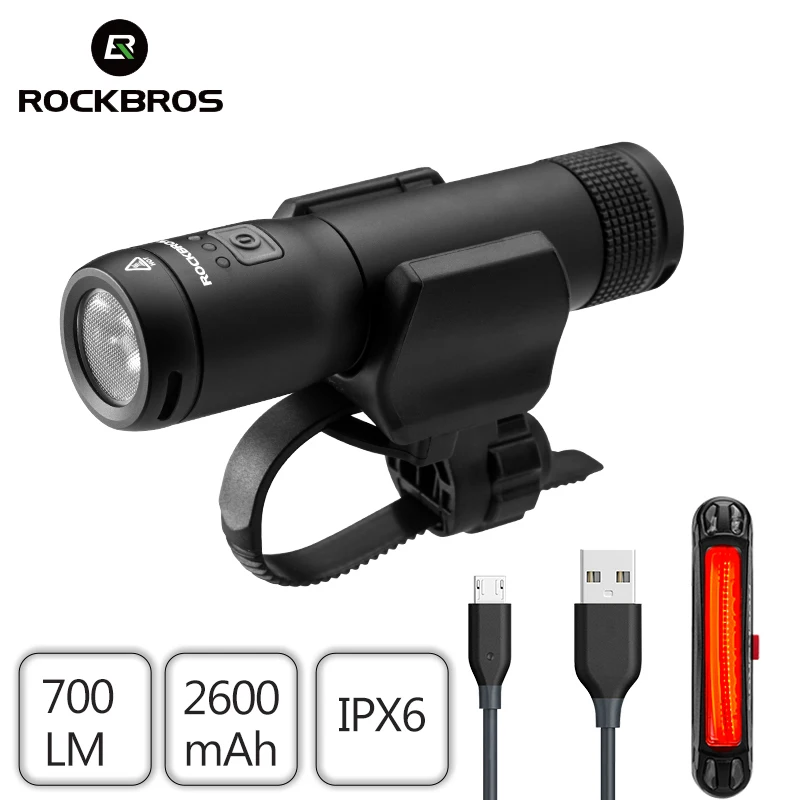 ROCKBROS велосипед фары 700 люмен ходовые огни велосипед перезаряжаемые IPX6 Водонепроницаемый фонарик MTB светодиодный задний фонарь