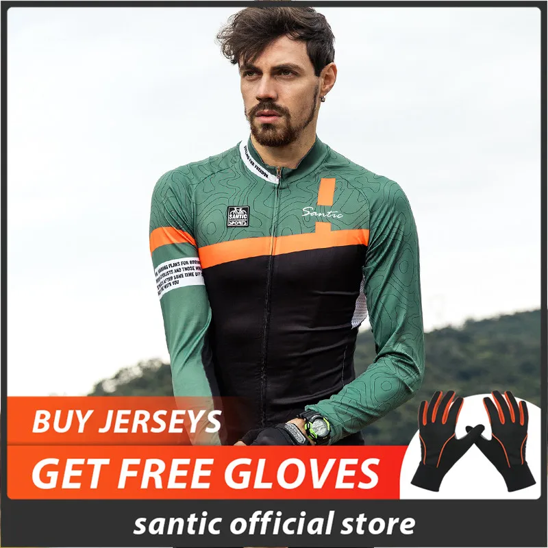 Santic Для мужчин с длинным рукавом Велоспорт трикотаж s Pro подходят дорожный велосипед MTB топ трикотаж сезон: весна–лето дышащий велосипед три...