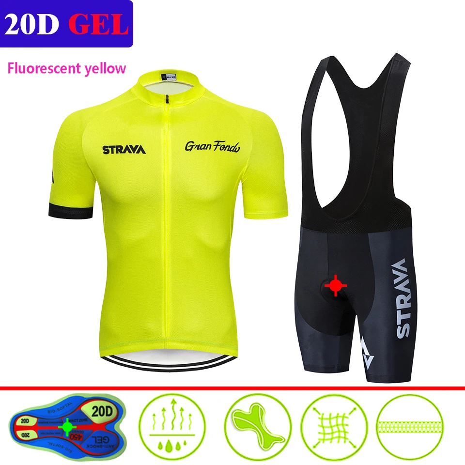 2019 STRAVA, короткий рукав, Майо, одежда для велоспорта, дышащая, для езды на велосипеде, Ropa Ciclismo, велосипедный Джерси, набор, флуоресцентный, желтый