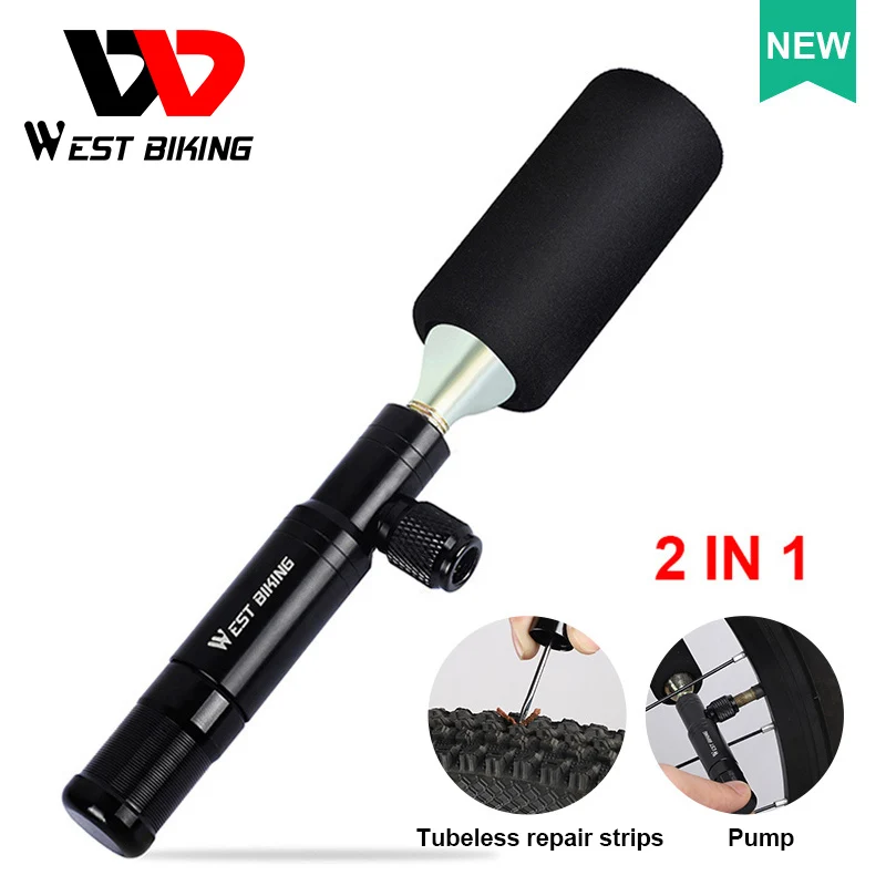 WEST BIKING, 2 в 1, мини-насос для велосипеда, инструмент для ремонта шин, алюминиевый сплав, клапан Presta & Schrader, Портативный MTB велосипедный воздушный насос